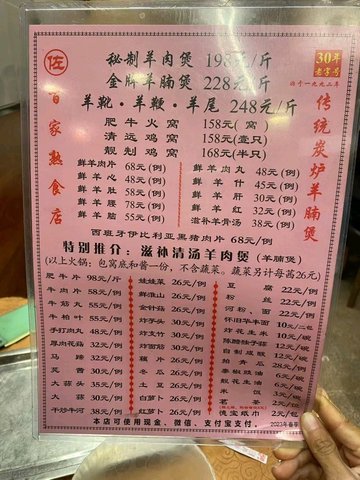 百家熟食店,老字号,以传统炭火边炉而享有口碑,出品有保证,最受欢迎的当然是炭炉羊腩煲。165元一斤的羊腩虽然少贵,但羊腩焖得好烂,好入味,一点臊味都没有,一咬一拉,羊骨便离肉。最吸引的是那一块羊皮,富含骨胶原,多吃能让皮肤水水的哦。吃完羊腩后,那一煲羊肉汁才是精华,加入些羊汤,下些青菜和面,一碗鲜味十足的羊汤面就完成了。面吸收了肉汁,那个鲜甜无法抗拒,哪怕是平时我们看不上的方便面,如果与羊肉汤搭在一起,味道马上提升几个等级。此外,那里的炒电螺也不错的。特别是一帮朋友围着炭火炉吃着羊肉和田螺,很有风味。建议坐在骑楼下用餐,更有意思。分享完毕。欢迎关注本人微博:chansyc开心…Read More