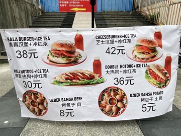 手抓饭 / 烤包子 / 清真汉堡 / 大热狗