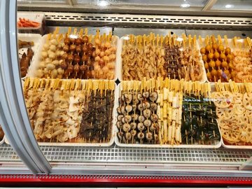 藤椒墨鱼仔串 / 藤椒海带串 / 藤椒鸭胗片串 / 藤椒海带串 / 藤椒鸭胗片串 / 藤椒豆油皮串