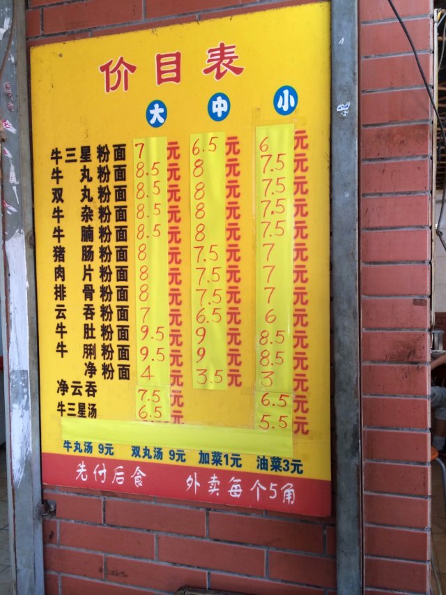 价目表