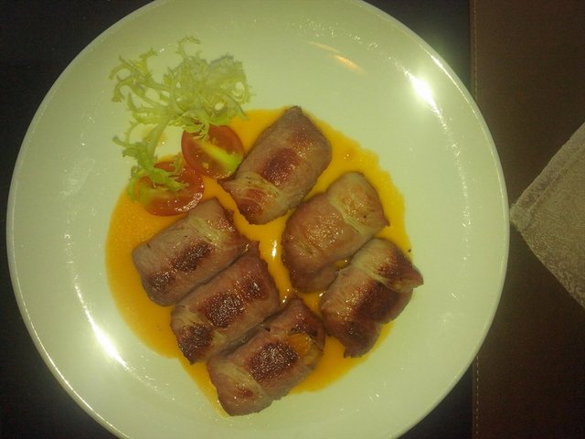 这里环境很好,位置很舒服,肉眼扒要了8成熟,切开有一点点红,咬落不老,很嫩,蘑菇汁配着吃味道很鲜,蘑菇汁调得不错,很creamy,而且里面的蘑菇都很好吃。腌肉肠仔卷不错,烟肉很脆,夹着一起吃,口感很丰富,肉汁也多。不错的一家餐厅!!查看更多