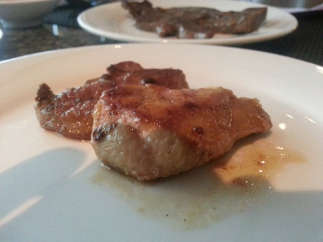 煎鹅肝:非常赞,虽然等的比较久,但是鹅肝真的很肥美,脂肪多,香甜~。