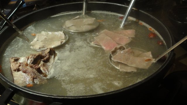 筷意火锅 大爱布甸狗等级42013-03-1330 浏览 关注 有幸能够参加网站的试吃活动~那可是奢华至极的全牛宴哇!!人品爆发啦~~雪龙3A 牛肉刺身,每人一份的。 第一次吃牛肉刺身啊啊啊~那个激动啊啊啊!! 食法同中国式鱼生差唔多,都喺捞埋d姜葱丝,芋丝,酸藠头豉油油等一起吃~连味道都差不多吧。。捞捞埋埋~一啖放晒落口!yummy yummy~~~~牛小排方煎,这个也是每人一份的。上面那堆草很好吃~那晚吃那么多肉肉,草类食物就显得更加好吃了!!牛小排煎的有点老了,不过味道很好!千万别小看这锅底!!那可是放了几大块牛骨的牛骨汤~吃完所有肉肉之后再喝一口汤才发现,原来这里才是最精华所在啊。以上食记乃用户个人意见 , 并不代表OpenRice之观点。赞好分享筷意火锅 筷意火锅 https://s.openrice.com/KtLT0m0dwG400检举 阳光天使 牛小排方煎好大一锅汤啊!2013-03-14 回应 大爱布甸狗 插图插乱了!!2013-03-16 阳光天使 呵呵·2013-03-19 张贴 评分5味道5环境5服务5卫生4抵食