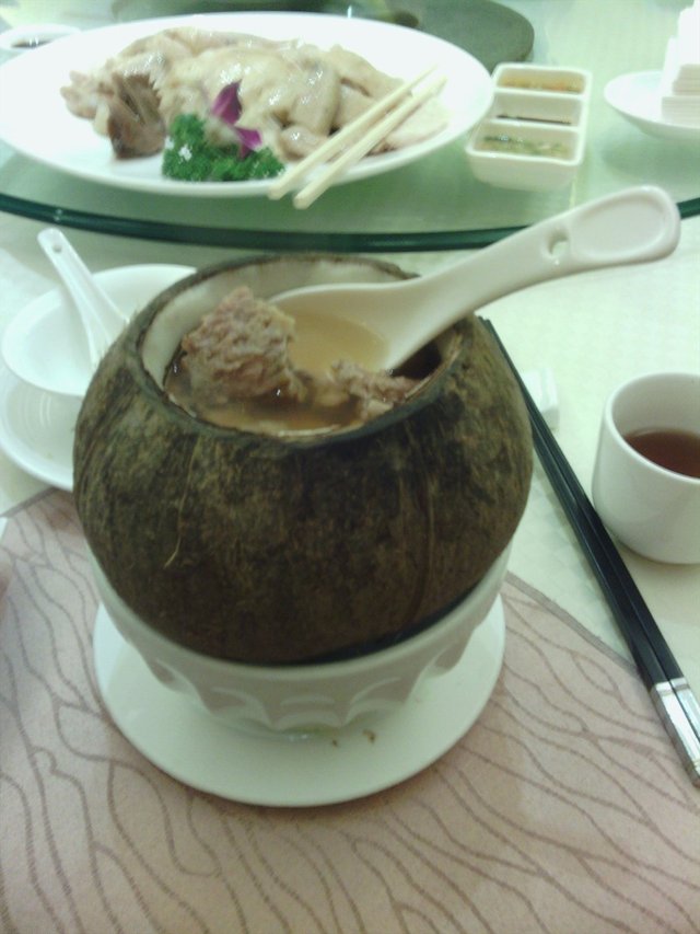 来这里当然要尝尝招牌的椰子鸡啦,每人点了一碗,椰子是整个的,里面有鸡肉和汤,汤煮的很浓,很香的椰子汁味,不过鸡肉是鸡胸部位,不太滑,椰子肉还粘在壳上的,煲得不软,用勺子很难挖下来吃,感觉有点浪费了椰子肉啊~价格还行啦,也不算便宜,这里挺宽的,座位多,应该不会出现等菜等很久的状况。…查看更多