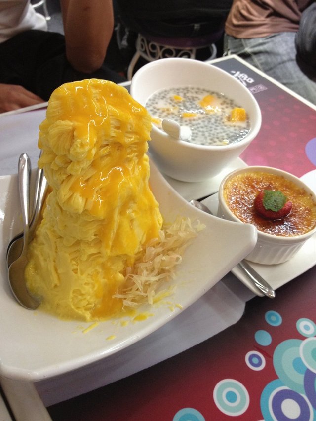 五代同糖曾经也红过一时但是因为现在的糖水店真的是太多了红过了以后就是平淡了。芒果绵绵冰味道还可以 芒果味道不会特别浓无功无过 没有芒果肉在隔壁。西米露这个很不喜欢 总感觉怪怪的芒果有点酸 法式焦糖炖蛋焦糖的分量也实在小了点蛋还是挺滑的。查看更多