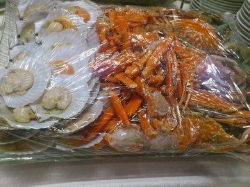 对我来说是花了大价钱来这里吃海鲜的,这里的店面很大,酒店嘛还挺可以的,环境干净服务员及时迅速有礼貌,团购一个晚餐自助餐188元一位,内容有海鲜、点心、乳猪、各种的饮料、日料等种类很多而且这里的点心好好吃的 泡芙是巧克力口味的,很脆,里面是巧克力酱来的甜甜的,很好吃,饼干是杏仁口味的,很酥脆很好吃