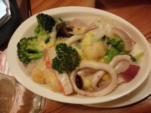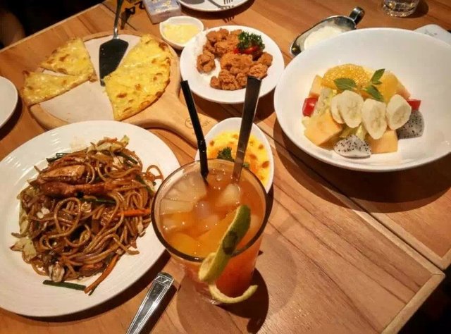 来卡朋聚会,原因:选择款式多,价钱实惠,味道还可以,而且,还抢了招行银行周三半价卷,嘻嘻服务:人多,所以没什么服务,提早过去,等了一会儿就有位置。海鲜炒饭:用料充足,味道可以,还算新鲜鳗鱼炒饭:个人觉得淡左d大杂扒:猪扒有点老了,卖相不怎么好看黑椒牛肉炒意粉:火候够,味道足,最爱芝士pizza:芝士很多,味道很浓,底能再薄d就好鸡翅:不错,炸得很香脆咸酥鸡:香香脆脆的,蘸酱开胃饮料:人手一杯,觉得最贵就是饮料,味道一杯,至低13…查看更多