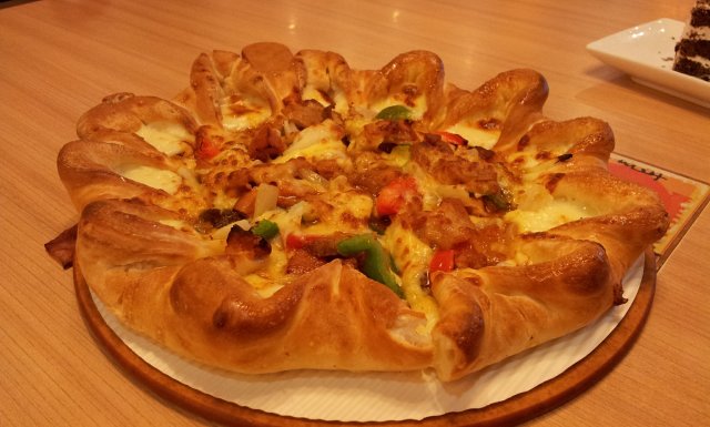 这家的必胜客挺大的,可惜等位一定要在一楼,如果逛街逛到二楼再进去,就有点小麻烦咯。估计是加盟店?这家的披萨弄得很焦啊,火候过了,芝心的圈圈也不成形的,有点小失望,好在味道还可以。美式经典土豆沙律卖相很差,好像被吃过或者搅和过的样子,看见就没有胃口了......除了黑森林蛋糕还不错以外。这家应该是有史以来吃过最差的必胜客了。查看更多