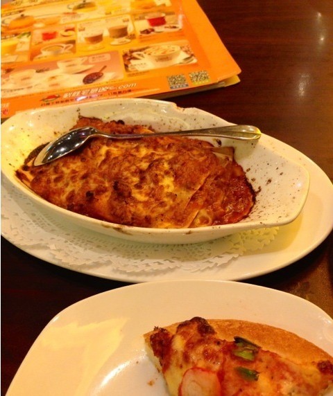 这家必胜客开在乐峰广场负一层,因为是新开张所以人流量不算多。点了一个焗饭和千层面,千层面的份量很足很厚,味道刚开始吃觉得还可以但吃到一半会让人觉得很撑,酱汁不太够太干。焗饭味道不错,茄汁很浓稠很好吃,但就是肉太少饭也焗太干了。查看更多