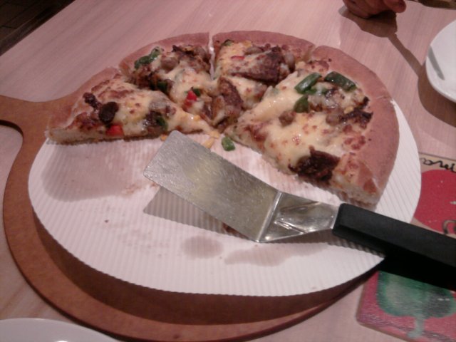 必胜客的出品其实一般胜在服务还可以 位置也坐的舒服而且带着学生卡还能打折现在有很多优惠套餐。很适合下午茶 几个朋友坐在一块儿聊天pizza会有点腻 吃两块就觉得芝士味道好腻肚子有点饱了查看更多