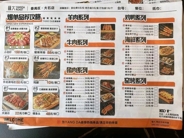 楊大炭烤小串 (萬倉隆超市) (廣州) 網址: https://s.openrice.com/KtbS0m0zfiyG0 地址: 廣州番禺區大石大涌路56號萬倉隆超市1層187號鋪 電話: +86 18924066789