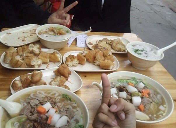 室内没位子坐,只好坐在室外了。在室外坐就等于吹风了!很冷呢!!一到午饭时候,就有很多人来吃熊记!简直就爆场了!要是熊记的面积能大一点就好了,店铺有点小。人有点多,就点了很多东西吃!牛三星很好吃!很爽口!就是酸萝卜不多,酸萝卜很好吃。油炸鬼很新鲜,应该是新鲜炸的,粥不错,很喜欢吃咸瘦肉粥!很入味!加点胡椒粉更好吃!我的朋友老是在我拍图的时候逗!查看更多