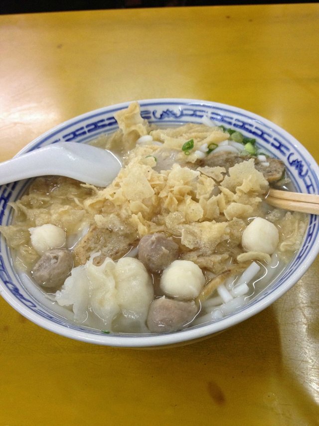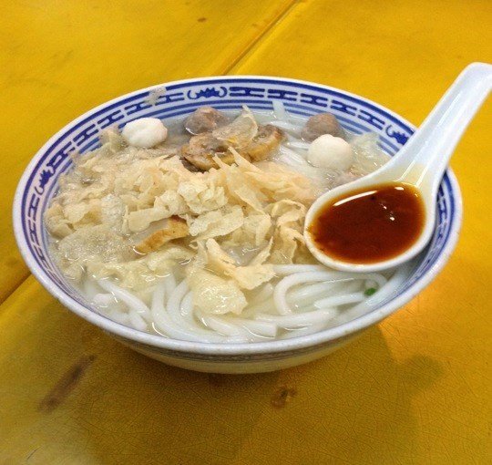 平常也有很多人来这里吃,应该是老字号的店。门面装修的一般,环境卫生也很一般,阿姨们的态度不大好,这里的炸鱼皮很正宗,特别喜欢吃,桌子也算多,桌面不大干净,都会有一些残余垃圾。叫了一碗大杂烩,大杂烩就是很多不同的配料混杂,能吃到很多不一样的东西。这里的云吞也很赞,跟外面的云吞不一样,那种滑溜溜的口感,真的很值得试一下。鱼丸是越来越小了,以前很大一粒的,不过依旧的爽口!原汁原味!…查看更多