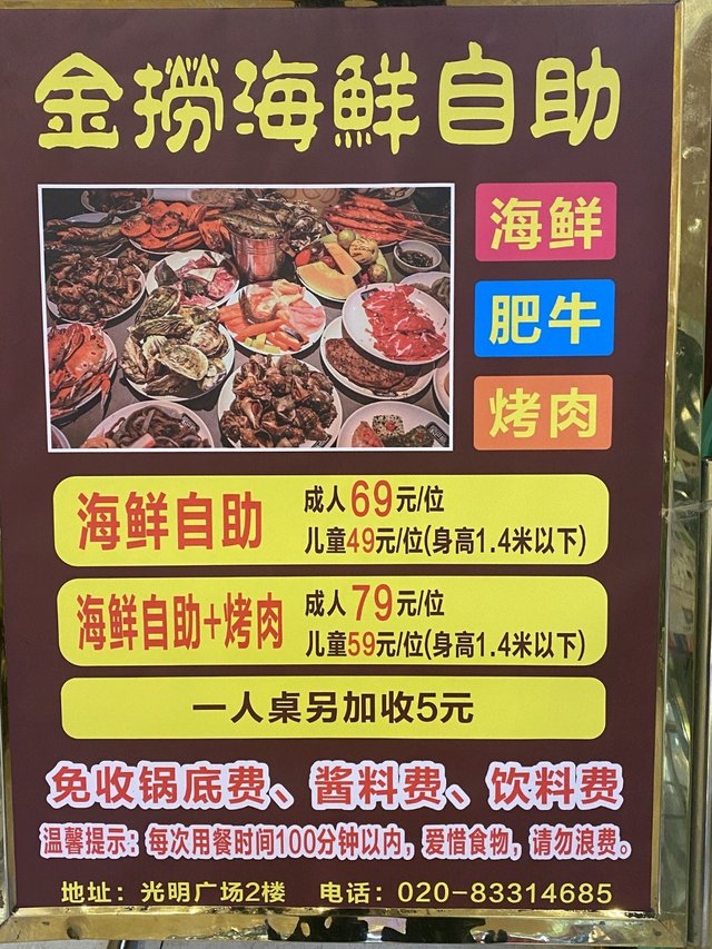 金撈火鍋 (光明廣場) (廣州) 網址: https://s.openrice.com/KtbS0m0XmC000 地址: 廣州越秀區北京路西湖路63號光明廣場2F層 電話: +86 020-83314685