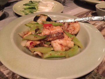 龙凤酒家的装修很上档次,鼎龙酒店本来也算是五星级酒店了,中餐厅当然是有翻少少档次概,到处都是凤凰的logo,连筷子架上面都是,商务宴请比较有face的了。清炒鳕鱼片是挺喜欢吃的,68块钱也不算贵,鳕鱼肉是很多的,估计有一整块鳕鱼扒的分量吧。堂煎蒜香牛肉粒我也挺喜欢的,牛肉粒充分吸收了蒜片和橄榄油的香味,口感还是蛮娇柔的了。