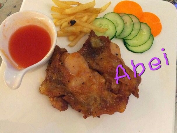 这间餐厅很特别,以猫为主题,门口就是一大只招财猫摆设,里面还有很多可爱的猫猫狗狗,虽然有动物,但是店面都几干净企理,出品味道还可以,价钱中等。吉列猪扒饭,有两块猪扒,都算几大块,外层的炸浆不是太厚,猪扒的口感还算挺嫩的,但是肉质就一般,比较普通的雪藏扒,盆栽奶茶,大大杯的,个卖相都几靓,奶茶表面都有一层几丰厚的泡沫,上面还有一小棵香草,味道就稍微淡了一点。