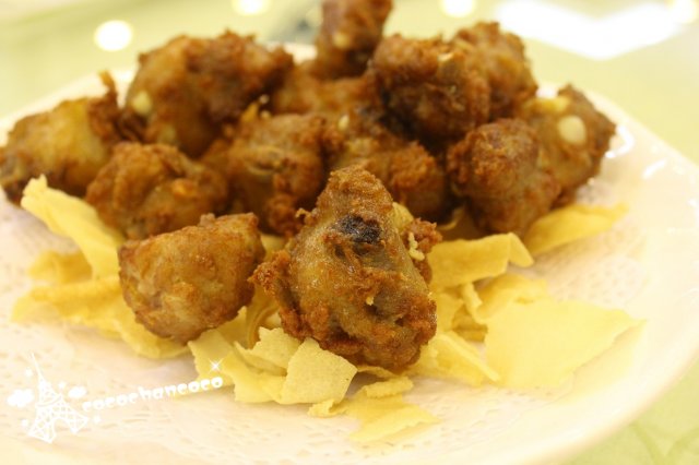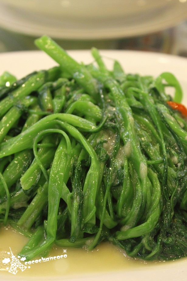 刚上菜的时候,还以为上错。看上去就像是煮咸蛋黄,南瓜蓉做成的糊状浓绸汤底,如此重口味,但我却难以抗拒,大家赞口不绝,很快被我们消灭掉。