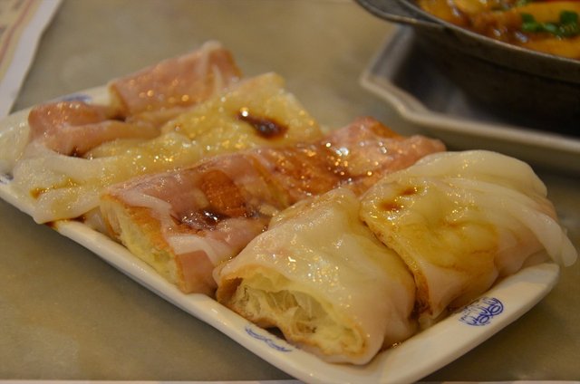 里面的油条是新鲜的,味道很不错,搭配外面滑滑的肠粉。蘸上特调的酱油,好吃。就是吃到最后酱油不太够了。
