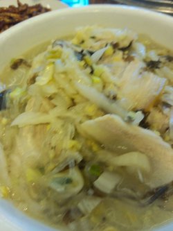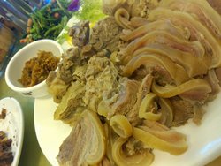 养了几只鹦鹉~ 一进去就看到了,亮点啊~ 一家吃东北菜为主的食肆,环境没有很讲究,但卫生还是能够保证的,要求不高的话也是可以坐得比较舒服的。他家的包子真的挺不错的。酱骨架其实就和煲过汤的骨架再用豉油调制过一样,肉质已经偏老偏硬了,而且比较难吃完整。包子和三鲜水饺都很不错,有东北的风味。羊杂汤放了很多胡椒,对汤的影响比较大,但羊杂还是很鲜的,可以多吃一点羊杂。手撕饼是正常出品可以。焦点是在羊上!一个用烤的很香很有BBQ的风味。另外一个是白煮的,搭配的调味料有点辣,羊肉本身没有调过味所以单吃羊肉会有点淡,但搭配了酱汁之后的辣味又觉得掩盖的羊肉的鲜。所以还是用烤的比较容易适合大部分人的口感。…查看更多