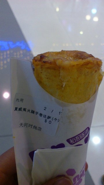 这里的店面挺小的,但是里面一应俱全,有做比萨的各种工具,店员也会推荐我们试试这里的手卷披萨,点了杯原味鸡蛋布蕾,挺小一杯,但是鸡蛋十分香和滑,另外这里的手卷披萨味道还挺不错的,外皮挺脆,鸡丁也挺多的,就是太小一份而已。…查看更多