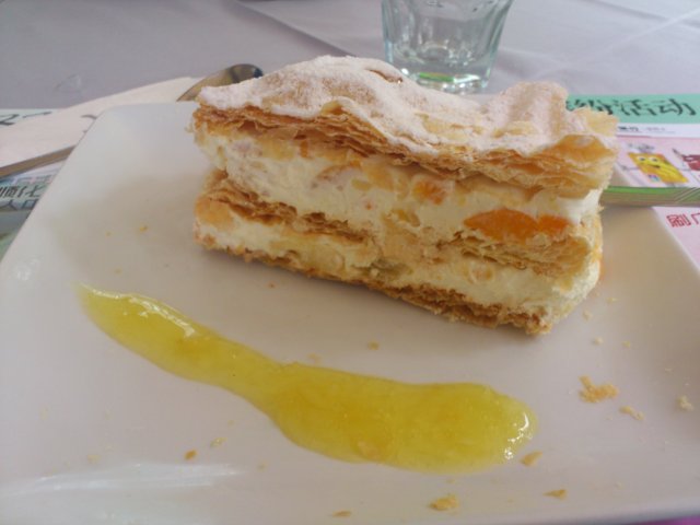 这里还是朋友带才懂得来这里吃饭,这家店在大众点评上的评价挺高的,这里的环境一般吧,里面很小,而且坐的也不是很舒服,外面就是露天的,夏天时挺热的,吃了这里的甜品-拿破仑,卖相很不错而且很大一碟,但是说实话吃起来十分不方便,叉子又小,一戳就全碎了,味道还是不错的,有水果和忌廉,忌廉又不会很甜。…查看更多