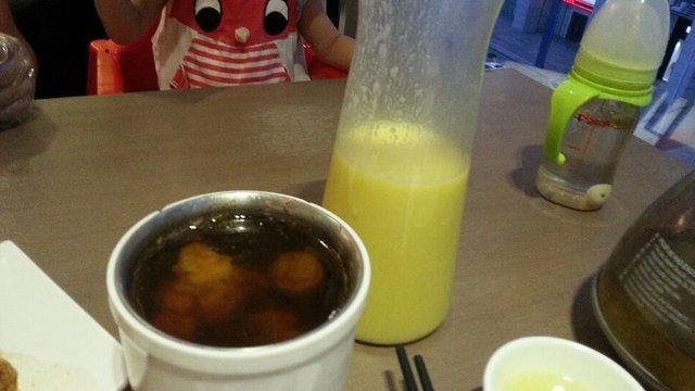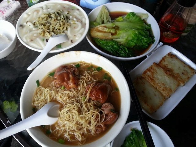 双拼排骨饭,滑蛋,生菜,黄豆排骨汤