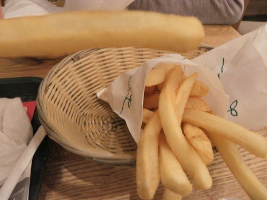 里面的座位都系木坐的,睇落高档小小咯饿,而且环境都比较舒服,感觉过来吃,都唔系单单为咗吃的,有时都系过来坐吓,顺便吃D。薯条,用个篮子装住的,睇落其实都可以,薯条好长,都系新鲜炸的,味道嘛,都还好。不过觉得呢度的番茄酱味道麻麻地哦,感觉吃起来好似唔够酸和香。…查看更多