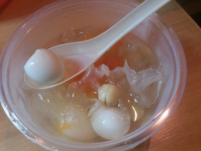 天气炎热,要吃翻碗糖水滋润吓,呢间店其实唔显眼,都系居民私营的小店,所以显得比较简陋,甜品大部分都系传统的甜品,价钱比较实惠,味道都系家常。因为感觉呢度坐得唔舒服,所以直接打包走,要的系木瓜雪耳,里面有两只鹌鹑蛋的,感觉味道唔会太甜,雪耳比较爽口,木瓜唔算清甜,但系比较新鲜,味道就好似自己做一样,唔错。…查看更多