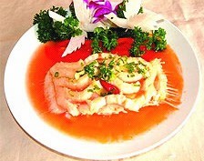 将蝶鱼去皮,放入锅中,加入调料煮熟,用淀粉高芡浇上即可。