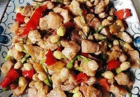 瘦肉150克,腌制好的茉莉花50克,食用油、盐、姜、蒜、酱油、淀粉、料酒、味精适量。
