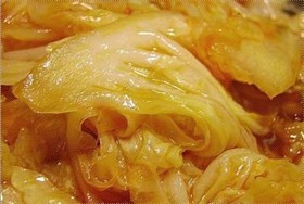 3.炒锅上火,放入底油,烧热后将白菜放入煸炒,炒熟后把调好的汁倒入,不停地翻炒,使汁均匀挂在白菜表面,醋熘白菜即成。
