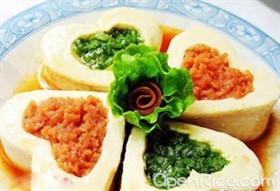 4、番茄汁加盐,以生粉勾芡淋在蒸好的豆腐上即可。