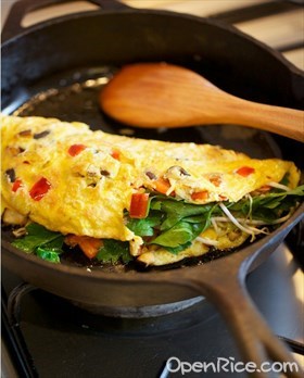 有蛋、有蘑菇、有蔬菜、有奶酪还有水果和枫糖,这样的早餐可以在30min内轻松完成。你可以使用能买到最好最新鲜的鸡蛋,以及奶酪、培根、菌类、蕃茄、火腿甚至坚果等你喜欢的配料。