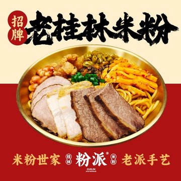 老桂林米粉 / 生料螺螄粉 / 秘制燜汁鹵蛋 / 牛肉又燒拌粉 / 古法手作酸梅婆 / 桂林又燒拌粉