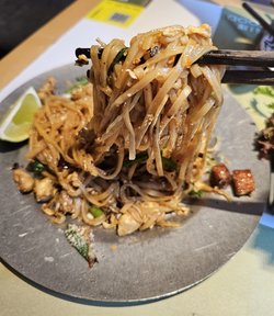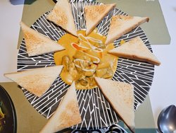一間好有特色既泰國餐廳,好有風味📸打卡一流💃🥓炭烤豬頸肉 外皮的酥脆與內裡肉質的軟嫩多汁形成絕妙對比,鹹香入味,搭配一旁的酸辣蘸醬,酸、辣、鹹、香交織,每一口都是滿足,旁邊的生菜和小番茄也起到了解膩的作用 🍝泰式炒金邊粉 河粉軟韌適度,與雞肉、豆芽、青菜等配料翻炒得十分均勻,醬料的味道濃郁卻不厚重,灑上的花生碎和辣椒碎更是畫龍點睛,增添了香氣與微辣的刺激感,擠上檸檬汁後,風味更加清新爽口 🥪咖喱配烤吐司 濃稠的咖喱醬色澤誘人,裡面的食材軟嫩入味,咖喱的香氣濃郁且層次豐富,微微的辣度十分過癮,酥脆的吐司與濃郁的咖喱在口中融合🍹鸭屎香檸檬茶 鴨屎香的茶香清澈明亮,帶有獨特的蘭花香與果香底蘊,檸檬的酸度被茶香中和得剛剛好…查看更多