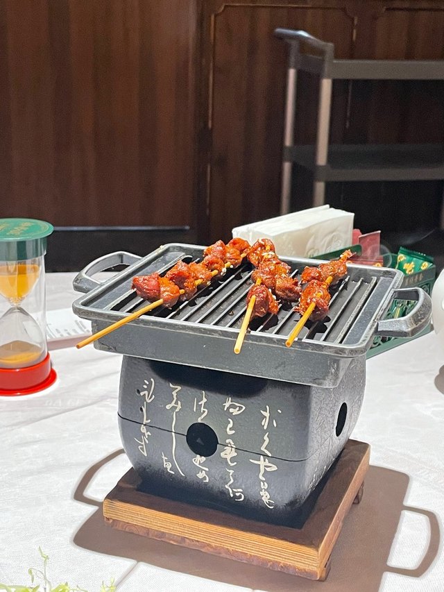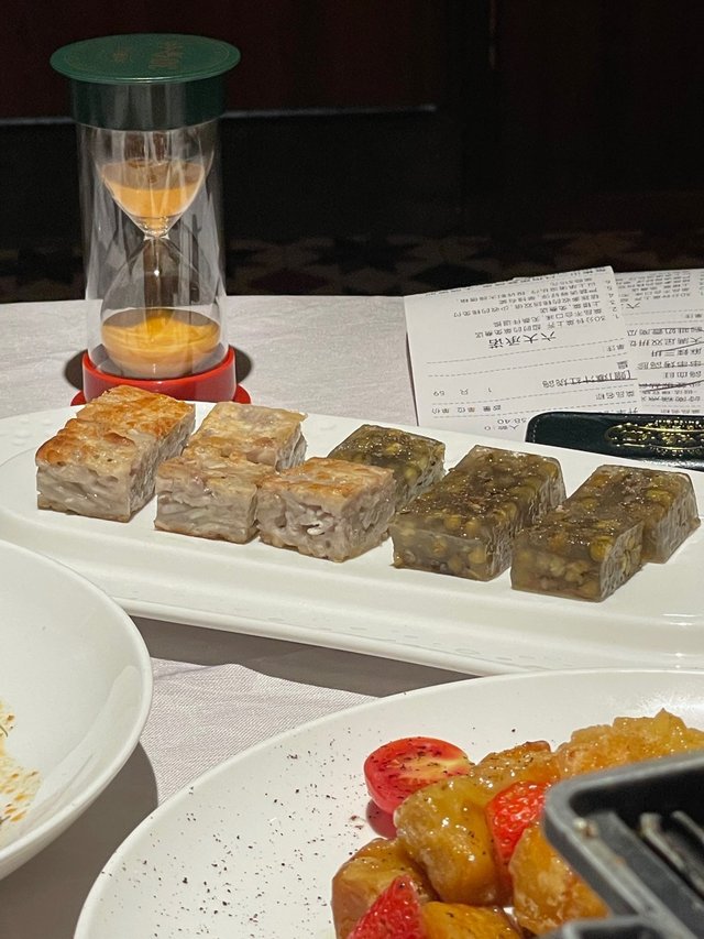 坐低一睇,枱面放咗個30分鐘漏斗,原來餐廳有個勁Fun嘅規矩:30分鐘內要全部上齊菜,如果唔夠快就送多一道,仲鼓勵你有投訴都送菜🙌。Serve我哋嗰位哥哥都超有趣,手忙腳亂之餘仲倒瀉飲品又跌豉油碟😂,我哋食到肚滿腸肥都同佢講唔使送啦,佢都堅持送多兩道菜!所以最終每款菜都得試小小,好似皇帝開飯咁豪——不過呢,根本食唔晒,好可惜造成咗啲浪費。