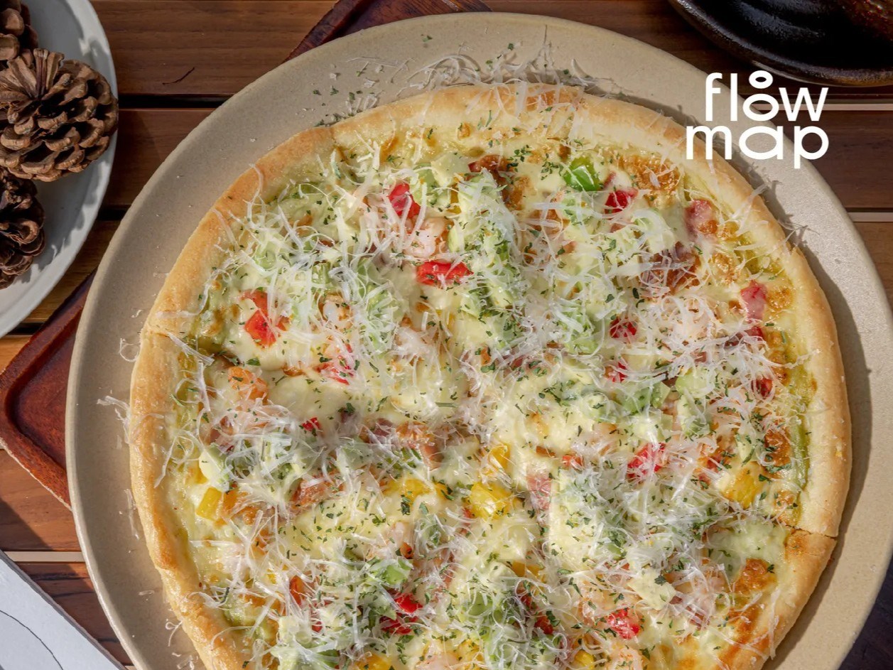 這款Pizza可謂口感與風味平衡的佳作,食材搭配兼具營養與美味。餅皮之上均勻鋪陳綿密的牛油果,與鹹香的培根、彈嫩鮮美的蝦仁形成巧妙互補,每一口都能同時觸及軟、香、脆三重質感。芝士經高溫烘烤後呈現微焦色澤,牽絲效果十足,與牛油果的柔軟質地融合得恰到好處;薄底餅皮外層酥脆、內層柔軟,咬下時既有餅香又不顯厚重,即使是對油膩敏感的食客也願意多嘗幾口。