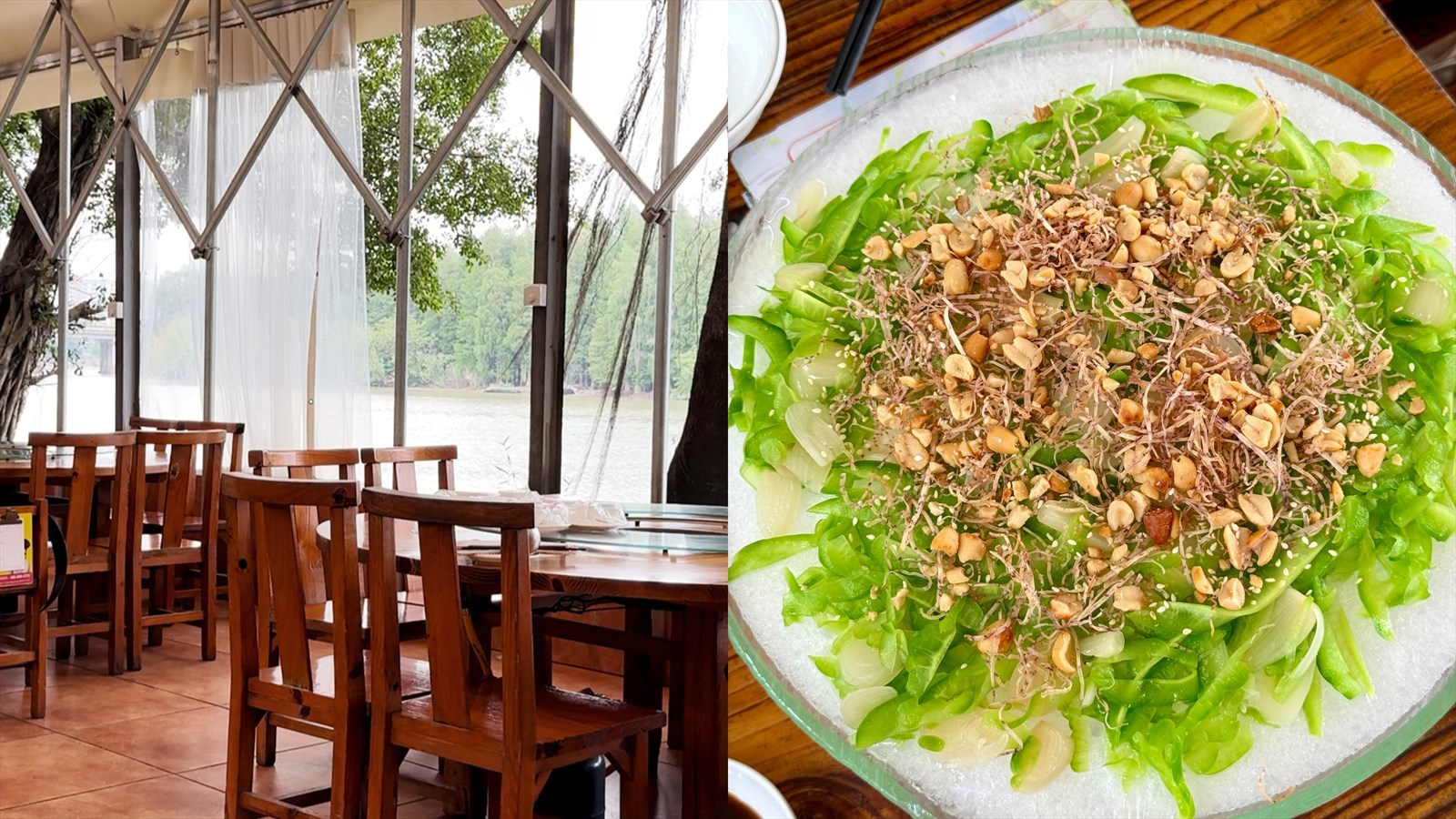 餐廳坐落于河邊,滿是田園氣息,恍惚間像走進了爺爺家的老後院,空氣裡彌漫著烟火氣,鼎勝農莊堅持選用新鮮農產品,保證每一口都是原汁原味的農家味。