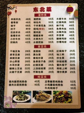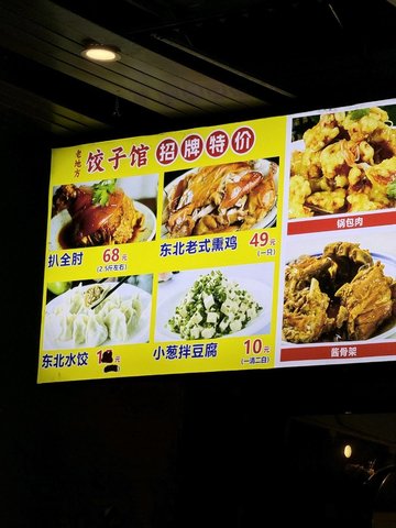 酱骨架 / 小炒鲜牛肉 / 韭菜肉饺子 / 牛排牛尾锅 / 地三鲜 / 干炸黄花鱼