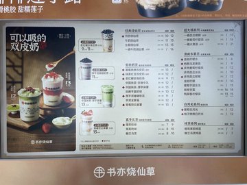 书亦烧仙草 / 仙草冻 / 葡萄芋圆冻冻 / 一桶水果茶 / 杨枝甘露烧仙草 / 小芋圆烧仙草