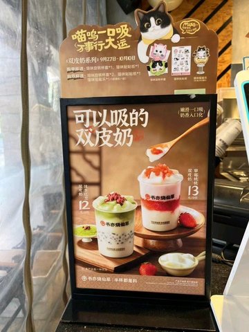 书亦烧仙草 / 草莓啵啵酸奶 / 黑糖小芋圆奶茶 / 椰椰仙草清补凉(中杯) / 葡萄芋圆冻冻 / 杨枝甘露酸奶