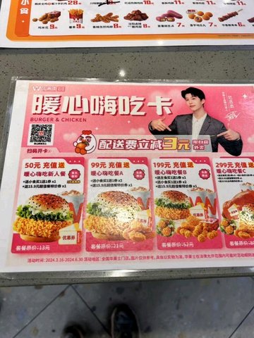 香辣鸡腿堡 / 辣味鸡肉卷 / 黑椒鸡块 / 薯条 / 无骨鸡柳 / 鸡翅膀