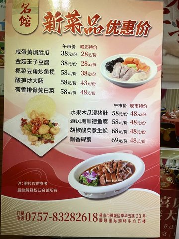 名馆 (顺联国际购物中心) (佛山) 网址: https://s.openrice.com/KtLS4m0ZEyzm0 地址: 佛山禅城区祖庙季华五路33号顺联国际购物中心5F层 电话: +86 0757-83282618