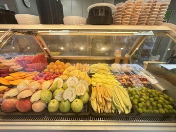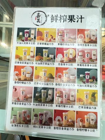 甘草水果 / 酸辣青芒 / 西瓜汁 / 冰糖草莓 / 喜果特制奶油 / 牛油果哈密瓜