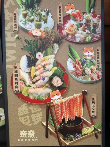 火炙寿司拼盘 / 三文鱼寿司 / 三文鱼刺身 / 鳗鱼寿司 / 芝士烧大虾 / 烤黄花鱼