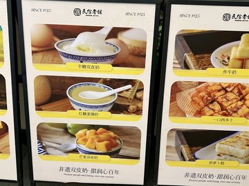 红豆双皮奶 / 炸牛奶 / 莲子双皮奶 / 原只椰汁炖奶 / 芒果双皮奶. / 莲子姜撞奶