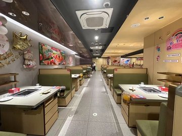 招牌虾滑 / 捞派毛肚 / 番茄汤 / 四宫格锅底 / 捞派麻辣滑牛肉 / 牛肉粒