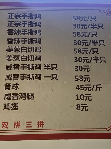 咸香手撕鸡 / 美味白饭 / 新鲜时蔬 / 韭菜炒蛋 / 盐焗鸡翅 / 豆角炒肉