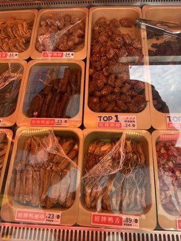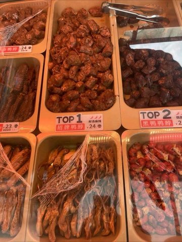 黑鸭鸭头 / 爆鸭脖 / 藤椒莲藕片 / 招牌鱿鱼 / 招牌香菇 / 招牌腐竹