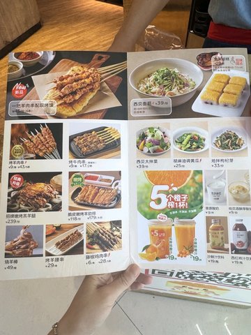西贝面筋 / 烤羊肉串 / 蘑菇汤莜面鱼鱼 / 蒙古牛大骨 / 西红柿盖浇莜面 / 蒙古奶酪饼